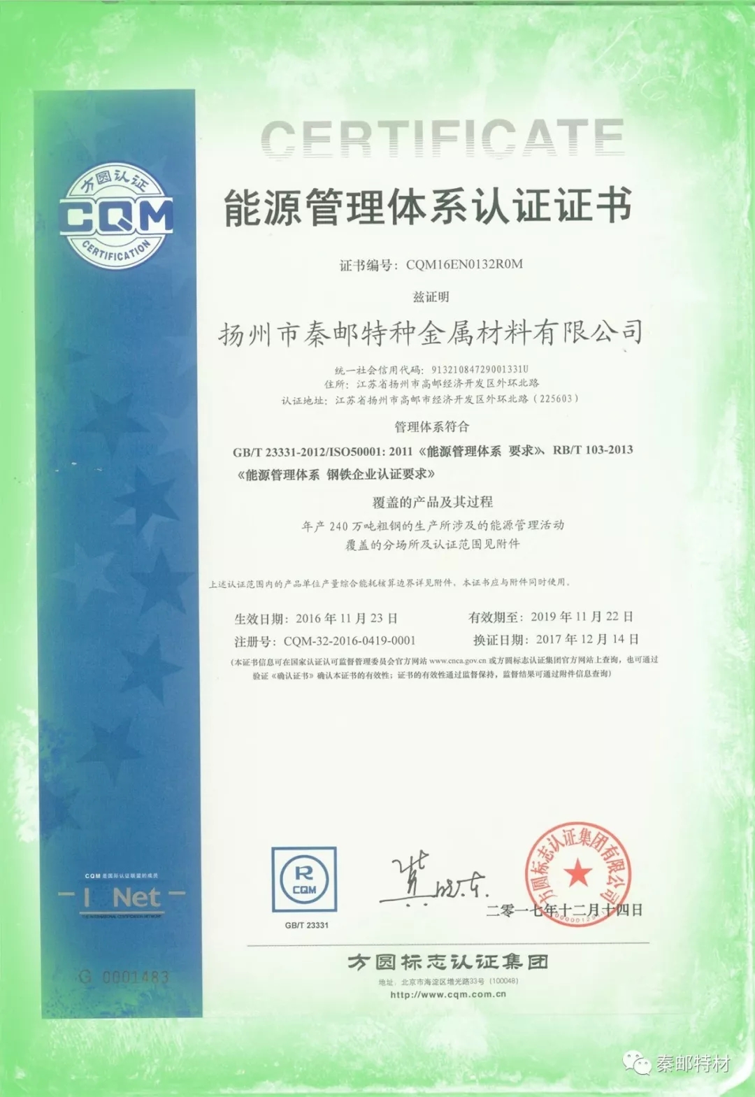 能源管理體系認(rèn)證證書